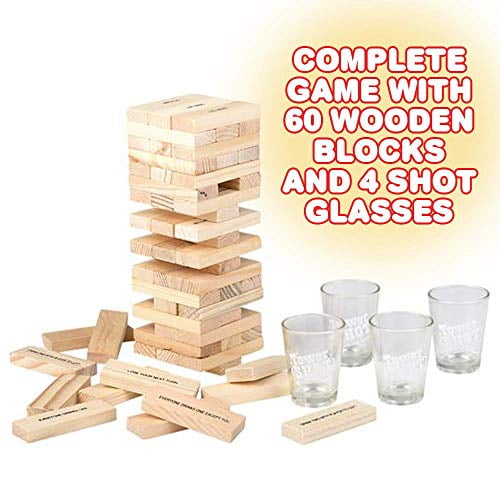 Artcreativity Tumbling Tower Drinking Game Drinking Game With 4 Glasses And 60 Wooden Blocks With Challenges Fun House Party Games For Game Night Great Gift Idea Walmart Com